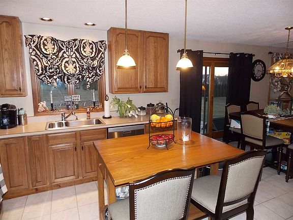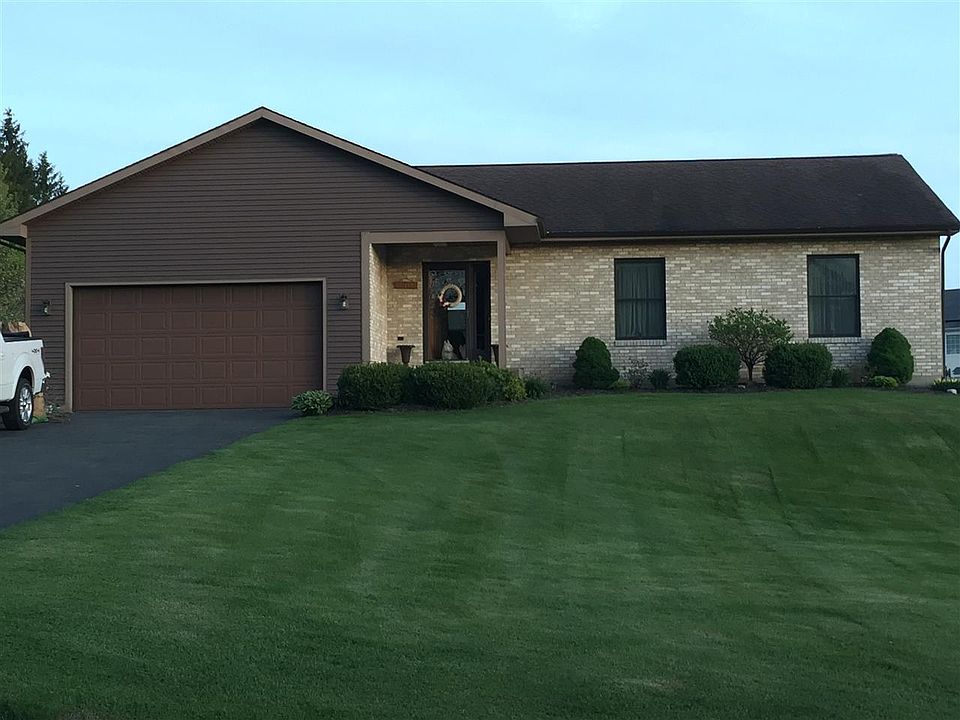Very well maintained brick faced ranch style home with open floor plan, cathedral ceilings, gas fireplace and remodeled baths. Sits on a large cleared lot in the west end of town, feels rural but just 5 minutes to grocery store, schools and restaurants. New roof just installed, huge basement with access at grade through a garage door at side of home. Two large outbuildings to store all of your toys and equipment!