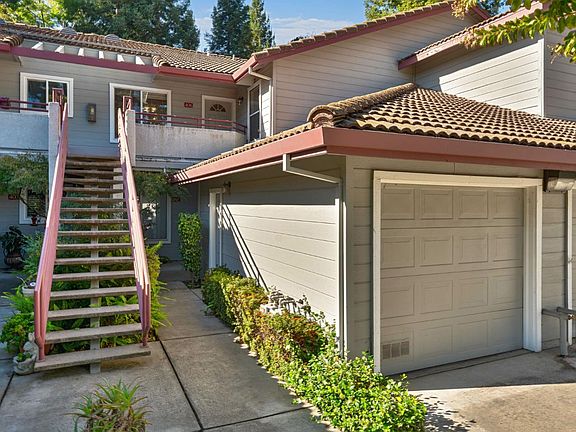 Welcome to this beautifully maintained, single-story upper-level home featuring 2 generously sized bedrooms and 2 full bathrooms in a gated community. Step into a bright and inviting living room with soaring cathedral ceilings, a cozy fireplace, and an abundance of natural light. Enjoy peaceful mornings or relaxing evenings on your private covered balcony, surrounded by lush landscaping and mature redwood trees that offer both beauty and privacy. Additional highlights include: in-unit laundry for your convenience, a private garage plus ample guest parking, central location just minutes from major shopping centers and freeway access. The community offers a resort-style living experience with a sparkling pool & spa, tennis and basketball courts, and a welcoming clubhouse all just steps from your front door. Whether you're a first-time buyer, downsizing, or looking for an investment, this home offers the perfect blend of comfort, privacy, and accessibility. Don't miss out on this opportunity!