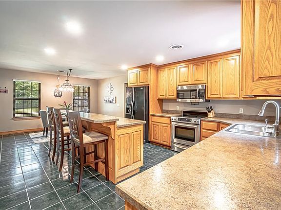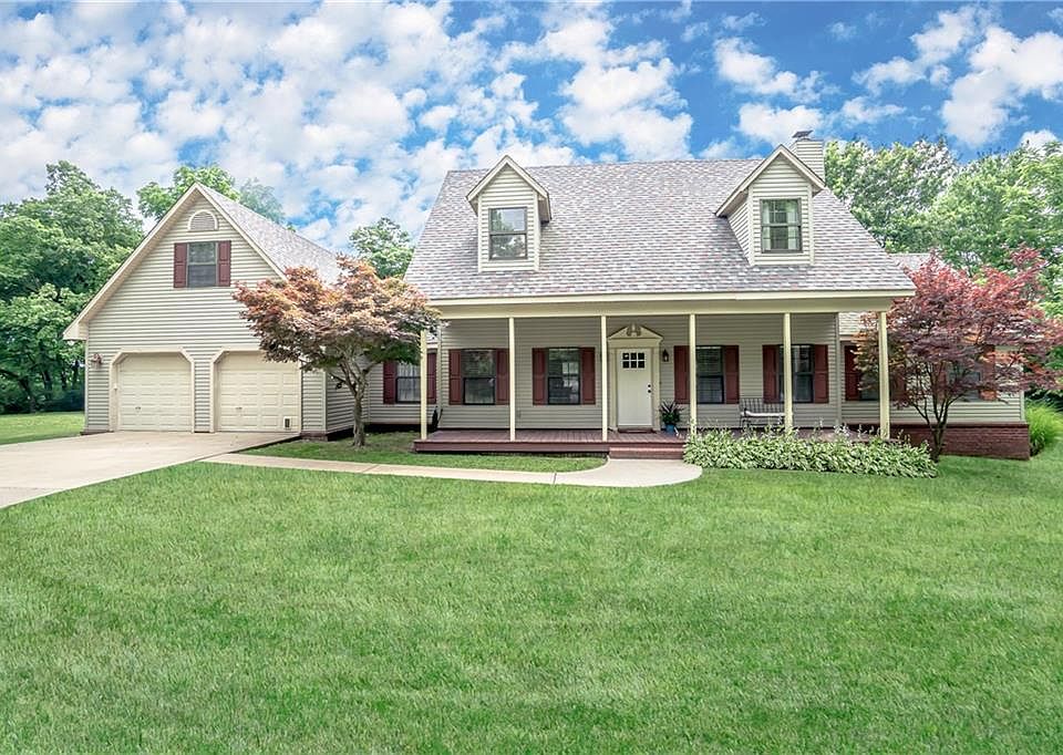 Country living yet close to town - this home has it all! Spacious 4 bed/3.5 bath on a partially wooded 4 acre lot. Home features large windows letting in an abundance of natural light, charming wood flooring in the cozy living room with wood burning brick fireplace, and eat-in-kitchen features an ample amount of cabinet and counter space. Heated and cooled sunroom makes for a great office space or sitting area. Master suite features a large walk-in closet, dual sinks with vanity area, and large soaking tub. Upstairs you'll find a perfect space for a second living room. Home features an abundance of storage space with easy access to attic storage upstairs, second room in garage would be perfect for a woodshop/storage space, closet space under the stairs in the kitchen area is perfect for your furry family members. Relax or entertain on the spacious back deck! Trees surrounding the property creates a secluded and private feeling. Home is near everything NWA has to offer. Welcome home!