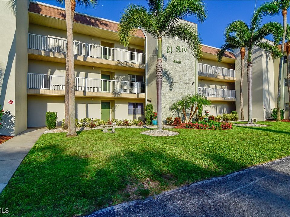 What Once Was Old Is New Again - Beautifully Re-purposed Top Floor Unit, Now Available For Sale! Treehouse Views Of The Beautiful El Rio Golf Course. This 12 Unit Building Is A 55 & Better Community With An Elevator And A New Roof - All Assessments Paid! This Lovely 2 Bedroom 2 Bathroom Condominium Lives Like A House, Boasting 1378/Square Feet Of Living Space. The Professional Refurbishment Has Just Been Completed From The Ground Up With New Luxury Vinyl Flooring Throughout The Main Living Areas, Highlighted With New Baseboards. Additionally, There Are New Pre-hung Interior Doors And Hardware. New Drywall And Designer Influenced Paints. Each Of the Bathrooms Feature A Contemporary Tile Design: New Guest Bathtub, Commode, And Sink Cabinet with Storage; Primary Bath En Suite Has A Walk In Shower, Commode, Sink Cabinet With Storage, And Linen Closet. Primary Bedroom Also Has A Large Walk In Closet, Ready For Your Custom Design Touch And Is At The End Of the Hall For Additional Privacy From The Main Living Areas. The Bedroom Hallway Also Features A Linen Closet, A Closet Housing The Hot Water Heater With Additional Storage Space And A Laundry Room With Washer And Dryer, And An Exterior Service Entrance Door! Bedrooms Are Each Wired For You To Install Your Choice Of Ceiling Fan Or Light Fixture. Additionally, The Bedrooms Each Have Great Light And Views Of The Golf Course. Design Your Lifestyle With Versatile Main Living Areas For Comfort And Convenience. There Is An Additional Closet Near The Front Entrance And The Kitchen, Could Be Used As A Front Hall Closet Or Additional Pantry Space For The Custom Designed Cook's Kitchen. This Dream Filled Space Has Been Designed To Maximize Storage Space With Plenty Of White Raised Panel Cabinetry, Rich Granite Countertops With Warm Organic Hues That Compliment The Luxury Vinyl Flooring. Enjoy Treetop Views, Through The Passthrough, While At The Deep Stainless Steel Kitchen Sink. Versatile Bonus Space At Rear Of Home Would Make A Great Den, Home Office, Or Cozy TV Room. This Building Does Not Have Use Of The Swimming Pool, However, There Are Swimming, Golfing, And Boating Amenities Nearby, To Use As You Like, Without Having To Pay An Increased Association Fee To Maintain Them: There Is A Lovely, Refurbished Lee County Community Heated Swimming Pool Just A Short Walk Or Bike Ride North On Orange Grove Blvd. Additionally, Enjoy A Golf Outing At The El Rio Golf Course, Adjacent To The Property. This Waterway Estates Community Staple Is An 18 Hole, Par 60 Course, Open To The Public, With Pay As You Play Tee Times! Finally, A Cape Coral Boat Ramp, 3 Miles Away, At Rosen Park At The South End Of SE 24th Ave With Plenty Of Vehicle And Trailer Parking, With Boat Slips Available For Rent! Walking Distance To Grocery, Pharmacy, And Specialty Stores, Churches, Restaurants, Bars, Personal And Professional Services, This Laid Back Lifestyle Is Perfect To Call Home, Or 2nd Home! Please Schedule Your Private Showing Today!