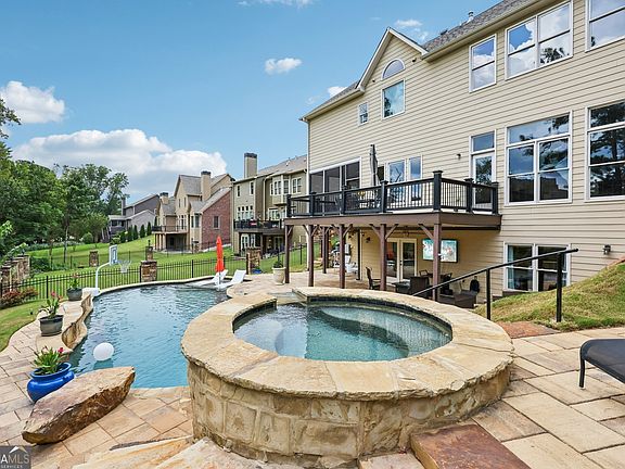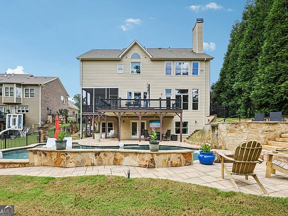 Executive Luxury in East Cobb's Premier School District. This isn't just a home-it's a lifestyle statement. Perfectly positioned in an exclusive East Cobb cul-de-sac and zoned to Davis Elementary, Mabry Middle, and Lassiter High-three of Georgia's most sought-after schools-this immaculate 3-sided brick executive estate offers resort-style living with unmatched convenience to Marietta, Woodstock, and Roswell. From the moment you arrive, the professionally landscaped grounds and architectural lighting set the tone for refined elegance. The heated saltwater gunite pool with jacuzzi that waterfalls into the pool takes center stage in the backyard oasis, surrounded by multiple outdoor living areas: a stone pool deck for sun-soaked afternoons, a shaded terrace-level lounge, and a covered screened porch-perfect for morning coffee or a sunset toast. A sun ledge with in-pool chairs makes it just as perfect for children's play as for adult relaxation. Inside, a grand foyer opens to an open floor plan designed for both elegance and ease. Hardwood floors flow throughout the main living spaces, complemented by detailed crown molding and a formal dining room fit for twelve. The fireside family room opens to the screened porch, while the keeping room-with its coffered ceiling, custom built-ins, and stone fireplace-frames tranquil views of your private backyard retreat. The gourmet kitchen is a chef's dream, with stainless steel appliances, custom stained cabinetry, expansive granite counters, a breakfast bar, and a sunny eat-in nook. Upstairs, the primary suite is a showpiece-an elegant oversized bedroom with a private sitting room, spa-like bath featuring a soaking tub and separate shower, and an expansive walk-in closet. A junior primary suite with private en suite bath offers comfort for guests or multi-generational living, while two additional oversized bedrooms share a spacious Jack-and-Jill bath. An upstairs media room provides the perfect spot for movie marathons, gaming, or homework space. The finished terrace level is an entertainer's dream, with high ceilings, luxury vinyl plank floors, a billiards area, guest suite with full bath, and abundant storage. The terrace-level media room is tailor-made for hosting-whether it's movie night with friends or watching the big game on the weekend. Step right outside to your illuminated pool and jacuzzi, where every evening feels like a private resort under the glow of curated exterior lighting. Every detail of this home reflects exceptional craftsmanship, impeccable condition, and timeless design-the perfect blend of prestige, comfort, and convenience. This is more than a home-it's the reward for all you've accomplished.