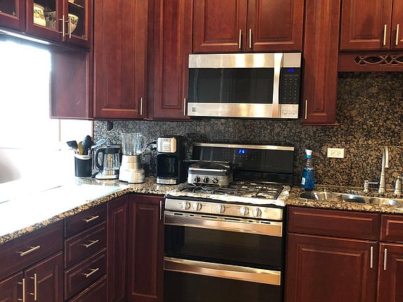This #3 bright and spacious well designed vintage 2nd floor 3BR/2BAh condo has all hardwood floors with windows all around and is decorated with custom made blinds in a 4 unit condominium have everything! Huge open-plan kitchen with uniquely designed kitchen cabinets, granite countertops, granite backsplash, high-end stainless steel appliances, and two large pantries. Good size dining room and bedrooms. The Master bedroom has a bathroom, and both bathrooms have beautiful granite tiles and windows. Large living room with granite fireplace and French door to the large front private balcony. Central heat and air conditioning, in-unit laundry. Quiet building in the desirable Margate Park area. Steps to the lake, Lake Shore Drive, the CTA bus and red line, Uptown entertainment district, and Andersonville nearby. Garage parking included. Rent is $2,800 with $400 non-refundable moving fee. The owner pays for water and trash and the tenant pays gas, electricity, and cable/internet.
