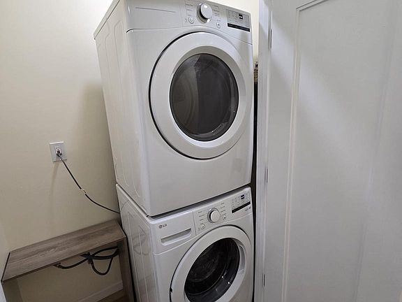 Sleek hardwood-style flooringIn-unit washer and dryerLarge windowsModern kitchenStainless steel appliances