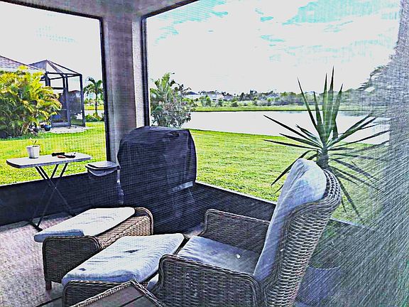 Stunning quartz countertopsAmple storageModern kitchenSerene pond viewsPristine cabinetsWood-laminate floorsScreened-in back porch