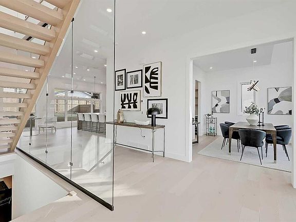 Perched high above the river valley in MONTGOMERY, this newly built estate home by NX HOMES blends bold architectural design with sweeping west-facing views and refined, contemporary comfort. Every detail has been thoughtfully curated—from the striking arched windows that flood the interior with natural light to the custom oak staircase and the cohesive balance of texture, tone, and proportion that defines each space. This is a home that feels both commanding and serene—a perfect match for its hillside setting just minutes from Market Mall, the University of Calgary, and the city’s vibrant northwest core. Inside, soaring 10-foot ceilings and a gallery-style foyer set the tone for what’s to come. The main level is anchored by a CHEF’S KITCHEN designed for gathering and performance, featuring waterfall-edge stone counters, high-end stainless steel appliances, and a large central island with seating for casual conversation. The BUTLER’S PANTRY offers extended prep and storage space, while the open-concept layout connects seamlessly to the dining area and a sunlit great room warmed by a modern gas fireplace. Oversized west windows frame mountain views, and double doors extend the living space outdoors to a generous upper deck—perfect for summer evenings and golden-hour sunsets. A front office, stylish powder room, and discreet storage complete this level with purpose and grace. Upstairs, three BEDROOMS WITH IN-FLOOR HEATED ENSUITES create private retreats for family and guests alike. The PRIMARY SUITE captures the west horizon with expansive windows and vaulted ceilings, a custom walk-in closet with built-ins, and a SPA-INSPIRED ENSUITE featuring a freestanding soaker tub, dual vanities, and an oversized glass-enclosed shower. A front-facing BONUS ROOM provides additional flexibility for a reading nook or play space, while the full-size LAUNDRY ROOM with sink keeps the upper level as functional as it is refined. The FULLY FINISHED WALK-OUT BASEMENT extends the home’s living and entertaining potential. Here, a sleek WET BAR opens to a spacious recreation and movie area—an ideal backdrop for game nights and gatherings. There’s also a fourth bedroom with a nearby full bath, a dedicated MUDROOM WITH BUILT-INS, and a rough-in for IN-FLOOR HEATING to keep every corner warm through Calgary’s winters. Every element of this property reflects craftsmanship and quality, from the ENERGY-EFFICIENT SYSTEMS and superior insulation to the TRIPLE ATTACHED GARAGE with R/I for gas heater and the low-maintenance landscaped exterior. Outdoor lighting highlights the home’s modern architecture, while the tiered front approach and private rear yard enhance curb appeal and usability. In a community prized for its views, parks, and proximity to downtown, this home stands apart—not just for its design, but for how it lives. Elegant yet welcoming, contemporary yet timeless, it’s the rare opportunity to own a truly ONE-OF-A-KIND CUSTOM BUILD IN MONTGOMERY.