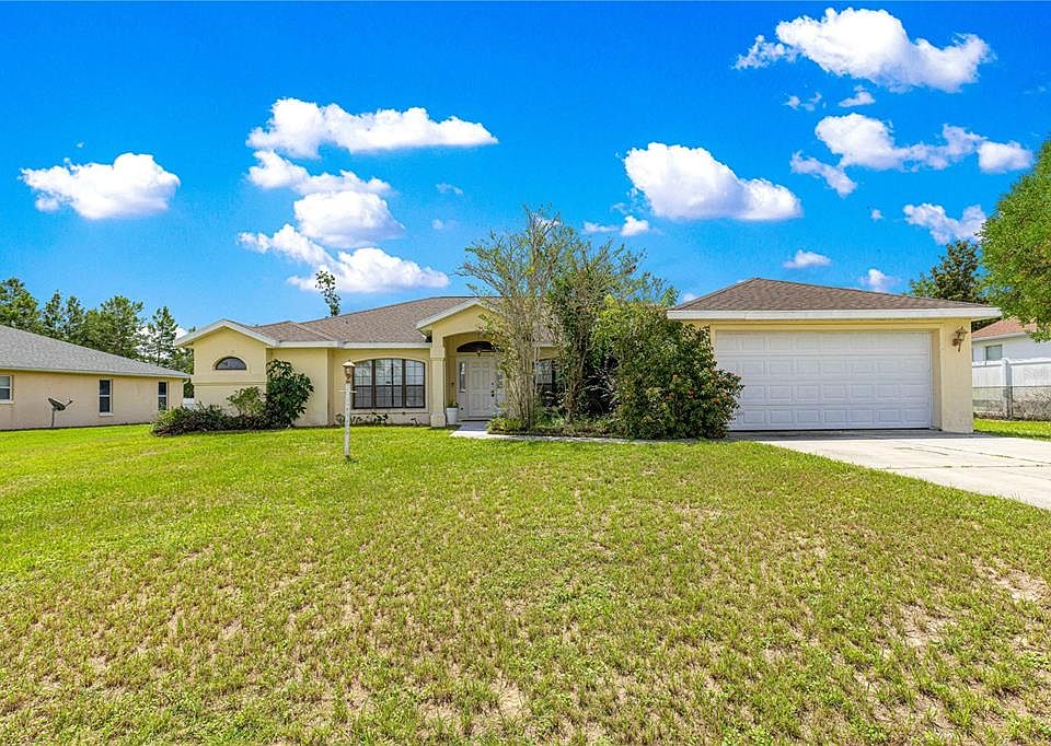 Beautiful 3 bedroom, 2 bathroom home with a versatile den/office located in the desirable Ocala Waterway subdivision. This spacious home features tile and wood flooring throughout, with wood floors in all bedrooms. The formal dining room is perfect for entertaining, while the kitchen offers tile flooring, plenty of counter space, and all appliances included. The master suite boasts two private walk-in closets, a walk-in shower, soaking tub, and dual sinks. Home also offers a laundry room with washer and dryer included. Additional highlights include a 2-car garage with opener and side door access, an exterior shed for extra storage, and a vinyl-fenced backyard for privacy. SELLER WILL REPLACE ROOF WITH AN ACCEPTABLE OFFER.