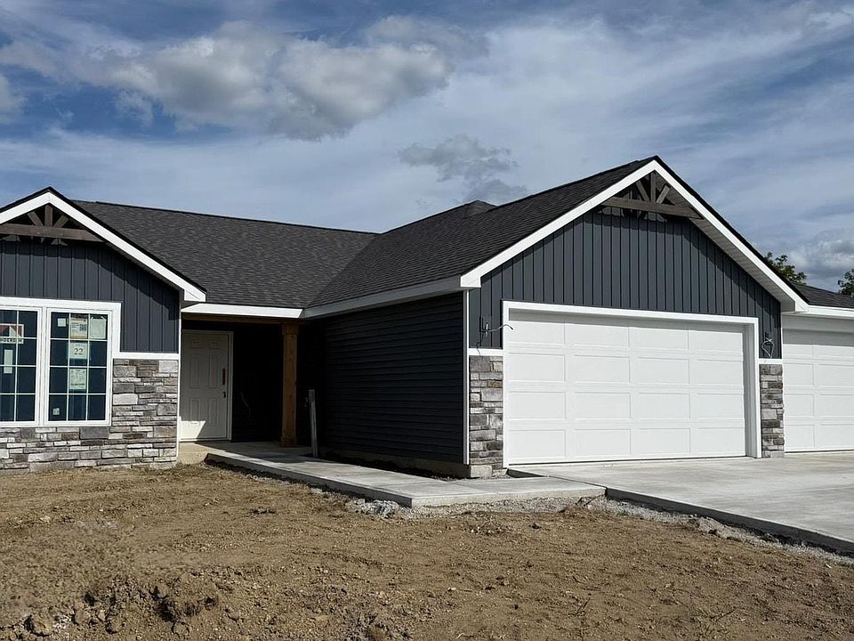 Currently our most popular floor plan with added custom touches throughout. This Acacia floor plan includes 10' ceilings in the main living, double vanity in the master, and gas fireplace with stone surround + custom, board & batten raised hearth. The 9 x 12 rear covered porch offers a peaceful east facing view with morning sunrises and shaded, evening lounging. Forget "builder basic", we have taken personalization to the next step for this price range - Custom accent wall in the guest bath, warm paint color in both bathrooms, Board & Batten coat wall in laundry, Shaw Luxury vinyl plank with signature Armourbead wear layer & acoustical backing in the hallways, great room, + main living, and matte black lighting/plumbing/hardware throughout. The list price you see also INCLUDES a number of items not frequently found in this price range of home - Finished (drywall, paint, trim, and insulated) 3-Car Garage, Soft close cabinet doors/drawers in the kitchen, Smart Garage Door openers on the steel, insulated overhead garage doors, and Andersen casement windows. The Silverstone subdivision located minutes from schools, shopping, Huntertown Gardens, Country Heritage Winery, and all the amenities northwest Allen County has to offer. List price also includes glass-top electric range, dishwasher, & Microhood, 12 shrub/perennial landscaper's package, and graded/seeded/strawed lawn.