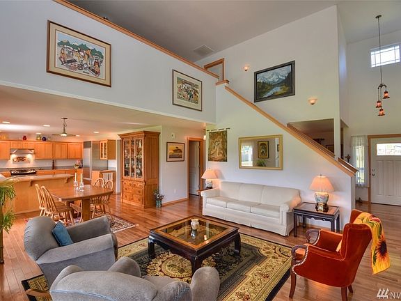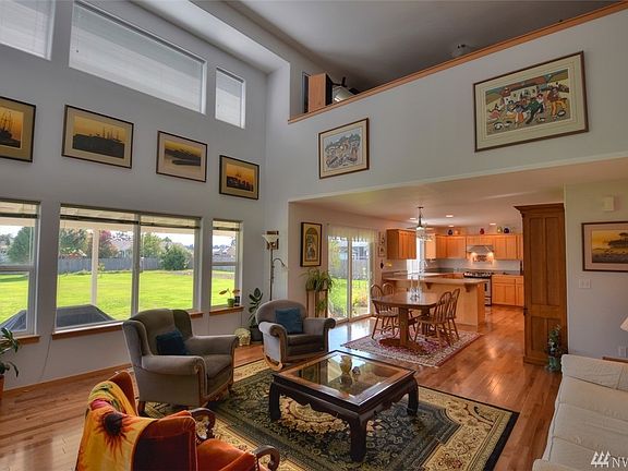 Beautiful home on almost an acre of lawn, garden space & fruit trees, covered front porch & backyard patio. Hickory wood floors throughout the downstairs. Kitchen has high end appliances including a subzero refrigerator. Master Suite w/5 piece ensuite on the main level, master bath has new quartz countertops, Great rm is spacious & bright w/ high ceilings & features plenty of windows. Large loft upstairs creates nice flexible space surrounded by 3 add'l bedrooms. Garden shed w/30 amp service.