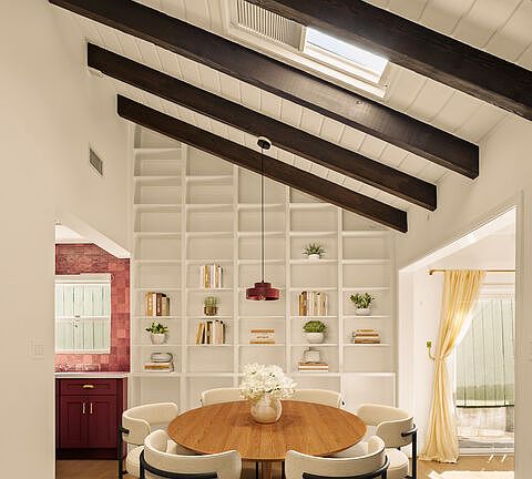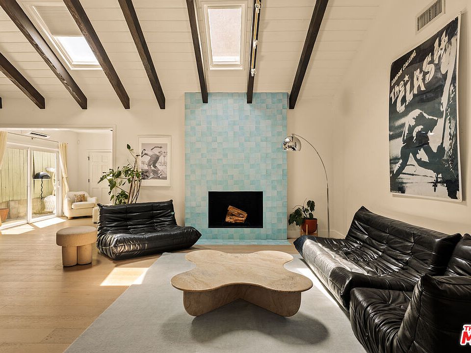 Set behind a gated entry, 4841 Don Pio Dr is a curated Woodland Hills residence that blends privacy, natural light, and refined design. This three-bedroom, two-bath home, plus a converted garage ideal for a studio, gym, or office, offers open-concept living enhanced by exposed beams, skylights, and thoughtful details throughout. A striking teal-tiled fireplace anchors the main living area, while the newly renovated kitchen features custom cabinetry, designer tile work, and stainless steel appliances. The spacious primary suite includes an en-suite bathroom, while two additional bedrooms offer flexibility. A secondary living room with double exposure open to a serene outdoor setting with a covered patio, turfed lawn, sauna, citrus trees, and lush garden beds. The property is equipped with solar panels, offering both sustainability and efficiency, and is securely gated with EV charging station. Ideally located near Ventura Blvd and The Commons at Calabasas, this gated home captures the essence of elevated California living with timeless style and comfort.