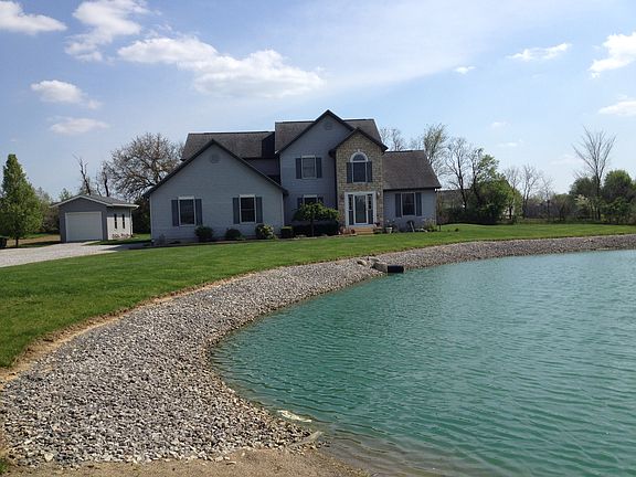 A home with a view! Sitting on a breathtaking 2.5 acre lot with ½ acre pond, the attractive exterior welcomes you and the inside and sure to impress. The sharp kitchen with stainless steel appliances and eat-in area is very spacious for entertaining. The two-story great room with hardwood floors and stone fireplace is a perfect place to relax. The first floor master bedroom and bathroom offer convenience and flexibility. Other features include a skylight in mater bedroom, a finished lower level, high ceilings, 2 ½ car garage for oversized vehicles or extra storage, pole barn, whole house generator, stocked pond and multiple flower gardens. Located 5 miles from the Columbus Zoo and Aquarium near Powell in Concord Township.