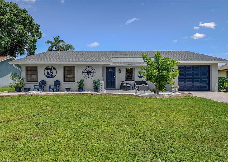 Near what Naples and Marco Island have to offer. Thoughtfully updated and professionally painted inside and out, including the garage, the residence showcases a spacious, newly added Florida room for year-round enjoyment. With three bedrooms, two baths and a one-car garage, this home blends modern upgrades with timeless charm. The interior features newer luxury vinyl plank flooring installed in 2022 with a transferable warranty, creating a light and bright atmosphere throughout every room. The living room is cozy and inviting with garden views, large windows and a ceiling fan. The kitchen is beautifully designed with a recessed tray ceiling and lighting with fan, granite counters and backsplash, stainless steel appliances, including a range with double oven, microwave, dishwasher, refrigerator/freezer, and a pantry for extra storage. A formal dining area with glass sliders opens directly to the Florida room, enhancing the flow of indoor-outdoor living. The Florida room, with its roof and roof structure replaced in 2019, is a standout feature with impact windows, tile flooring, wood-accent ceiling, and tranquil garden views. Used as an office, it includes a door leading to the paver patio. Outside, unwind on the private paver patio surrounded by lush landscaping, the ideal spot for morning coffee or evening relaxation. The owner’s suite offers a peaceful retreat with an Emerson ceiling fan with LED light, walk-in closet with shelving, and an en-suite bath with a shower-tub combo. Two guest bedrooms, each with modern ceiling fans and remotes, are adjacent to a bath featuring a marble vanity top and shower-tub combination. Additional updates include a freshly painted garage floor completed in 2025, professionally painted exterior and interior, and newly installed pavers along the sides of the home. The roof was replaced in 2021, and a leaf guard gutter system was added in 2023 for easy maintenance. Residents enjoy low HOA fees covering internet, cable, lawn cutting, irrigation, and pest control. Positioned just off U.S. 41, this move-in-ready property is an ideal year-round residence or seasonal escape with modern conveniences and coastal charm.