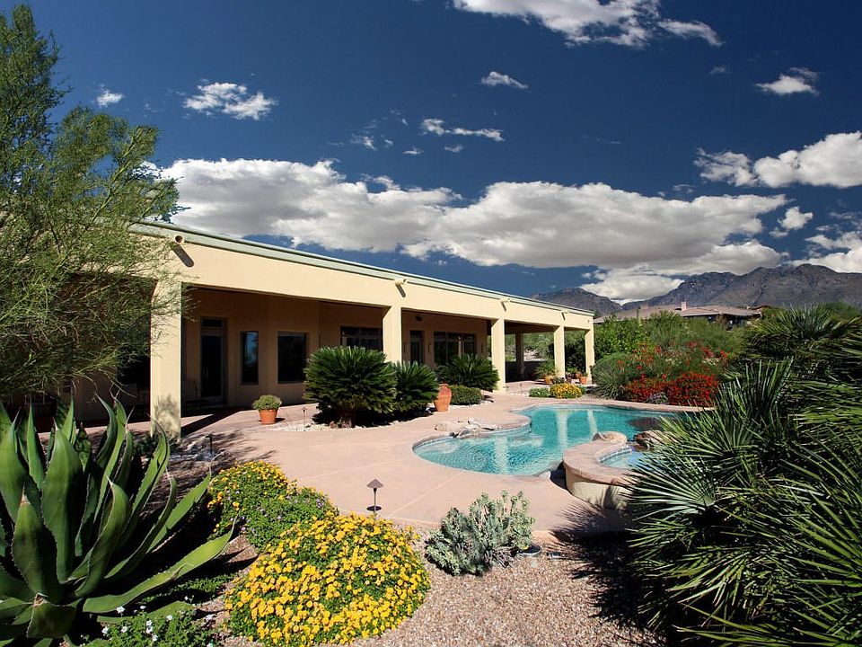 BREATH TAKING RIDGE TOP VIEWS-Panoramic Mountain, Sunrise, Valley + Sunset Vistas. Perfection inside and out_Custom Built to the seller's exacting specifications by renown builder, Charles Lathrem. Exquisite Finishes-8Foot Aler Doors created by Butler Doors with brass hardware-Natural Stone Floors-Anderson Energy Efficient Windows-Cherry Cabinets and Drawers-Grohe Faucets-Toto Toilets-Fabulous Lighting-Quality Appliances-Extra Deep and Wide 3 Car Garage has Cabinets and EZ Clear Floor-Adjacent is 20x20 Workshop or Exercise Room with Mini-Split-Beautiful Master Suite w/Luxurious Bath+One of the Best Closets in Tucson! Huge Office(4th BR) and Den-Split Bedroom Plan-Glorious Grounds-Delightful Pool/Spa/Waterfall-Huge Covered Porches-Perfect for Entertaining!Beautifully Built and Maintained!!