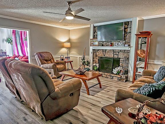 Welcome home to this charming 3-bedroom, 2-bath gem nestled in a quiet neighborhood. You’ll love the inviting entry hall with a wrought iron security door that leads into a spacious living room featuring a cozy masonry fireplace with stone surround and wood laminate flooring. The open layout connects the living area to the kitchen and dining room—perfect for entertaining! The kitchen offers stainless steel appliances, a breakfast bar, and an adjoining breakfast nook for your morning coffee. The dining area, ideal for holiday gatherings, includes two sliding doors opening to the back patio. The primary suite boasts a walk-in closet and private bath, while two additional bedrooms share a second full bath. Enjoy outdoor living in the large fenced backyard with an open patio and storage shed. A 2-car garage completes this beautiful home ready for its next owner!