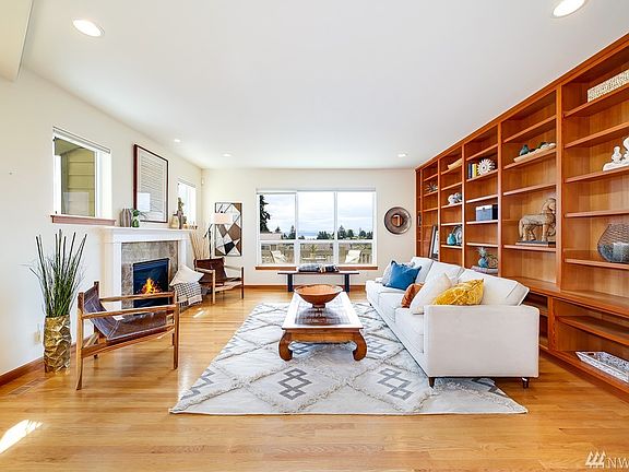 Stunning Sound and Mountain views abound in this custom-built Farrow home located in the peaceful Seaview neighborhood just blocks to the Alaska Junction. Welcoming entry with tall ceilings and wide hallways that continue throughout the home. The floor plan is absolutely spectacular for formal or informal gatherings. The living room is light and bright and features a built in bookcase, gas fireplace and warmed by gorgeous hardwoods. The dining room opens to a covered deck which is a perfect place to dine alfresco or watch the sunset while enjoying a dramatic view of the Puget Sound. Practice your chef's skills in this large kitchen with granite countertops, cherry cabinets and top of the line appliances including a gas cook top and two ovens. This floor also includes a family room with another gas fireplace and opens to a deck and patio to kick back and relax. This floor is finished by a half bath. The wide oak staircase to the upper floor boasts a luxurious master suite with vaulted ceilings, a gas fireplace, hardwood floors, walk in closet, separate Air conditioner/heater to keep the bedroom at an optimal temperature and a deck with more Sound views. The en suite bath boasts a custom tiled oversized shower, double sinks, separate toilet, and a True Cast Iron Tub with a dedicated hot water heater overlooking the Sound. The upper floor is completed with two more bedrooms, a full bath and a laundry room with sink and cabinets. The multi-purpose lower level is showcased by a Cinema/Game room with theatre lights, Dolby sound and projection screen. There is a custom Queen-sized Murphy Bed, a full bath and lots of storage. No custom details were left undone including air conditioning, water filtration systems, surge protection for all electrical equipment, high quality non distorting mirrors, storage area with light, custom built in shelves, security system and timers on all fans. There is a 2 car garage and all this is an oasis close to everything! Welcome Home!