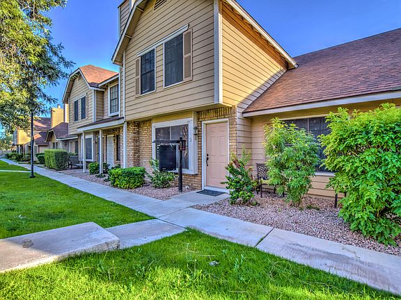 Updated & upgraded throughout, this 2 bedrooms, 2.5 bathrooms home is a must see! Beautiful kitchen boasts granite countertops, tiled backsplash, breakfast bar & stainless steel appliances. Real wood & tiled floors throughout. Two master bedroom suites with vaulted ceilings, custom tiled showers, copper fixtures & granite countertops. Powder room & inside laundry area downstairs. More great features include custom iron stair railing, ceiling fans throughout & north/south exposure. Quail Landing Community has pool, spa, tennis courts, park & gorgeous mountain views. Nestled in a convenient Ahwatukee location near major shopping, dining, entertainment & golf courses. Quick & easy access to the I-10 with a short commute to downtown Phoenix, Sky Harbor Airport & so much more! Great investment opportunity! Furniture available for purchase by separate bill of sale.