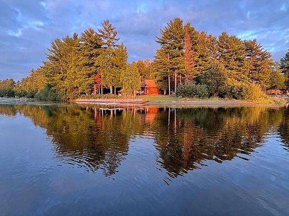 Extremely private setting featuring 4 acres and over 235 feet of west facing frontage on Lake of the Falls! The property is amazing! It’s perfectly level to the water, great sand for swimming, lots of land to stretch out, play games & have a fire by the shore. You’ll love the breathtaking sunsets while sipping your favorite beverage on the lakeside covered deck. The log home features a warm and inviting rustic design with beautiful wood ceilings & exposed beams. 2 grand stone fireplaces highlight the living room & primary bedroom, while the dine/living area offer panoramic lake views. Main level hosts Bedrm, full bat, kitchen, dining & living room with towering cathedral ceiling. Upstairs offers 2 bedrms and look out area over the great room. There is a full basement, 2 detached garages and the home comes furnished! Lake of the Falls is a great fishing & recreation lake, is located with direct access to the UTV/snowmobile trails, close to restaurants, town, yet quiet secluded setting!
