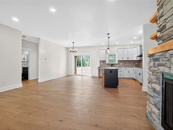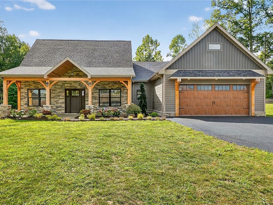 Welcome to this beautifully crafted Craftsman-style new construction home where timeless design meets modern comfort. This single-level home on 0.5 acres features 3 spacious bedrooms, 2.5 bathrooms, and a 2-car garage. Inside, enjoy an open-concept layout with natural light and classic Craftsman details. The kitchen boasts granite countertops, a large center island, and a butler’s pantry for extra storage. A natural stone gas fireplace anchors the cozy living room. The master suite offers a peaceful retreat with a walk-in closet and a private bath featuring dual vanities and a tiled walk-in shower. Two additional bedrooms and a full bath provide space for family or guests, while a half bath off the garage entry adds convenience. Built on a slab with no basement, the home features in-floor radiant heat and central air for year-round comfort. Relax on the covered front porch or entertain on the covered back porch. Close to local amenities, this home blends style and ease.