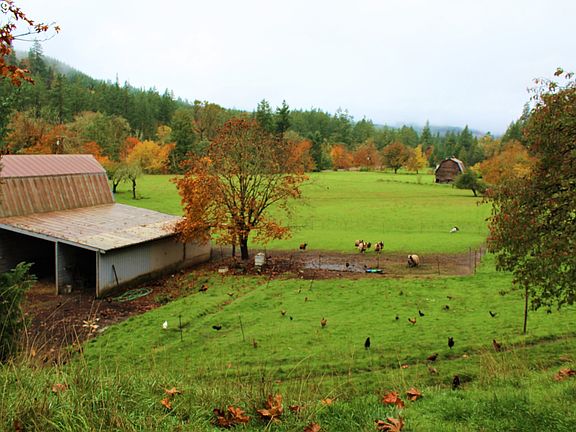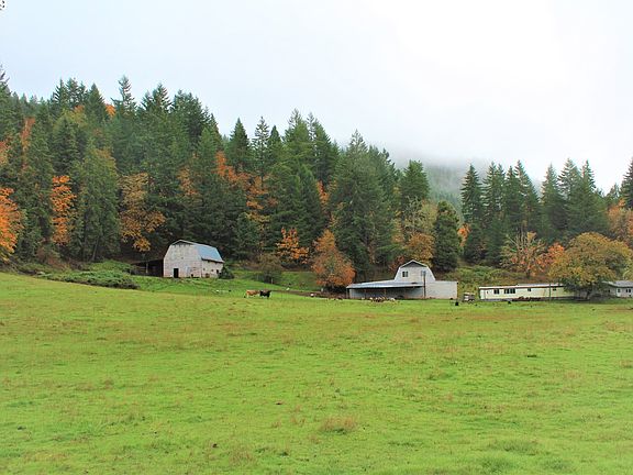 Lovely country home plus 44 acres about 12 miles from Cottage Grove. Property adjoins Row River Bike trail and swimming holes across road. Lovely Brice Crk nearby. Home w/vaulted ceilings, hardwood and large kitchen. SW exposure perfect for grapes. Over 9000 square feet of well-sited barn and shop. Shop has 12' ceilings,Barn has 5 stalls/hayloft. Cross fenced. Peaceful and private. Currently 2 homes one is manuf. home used as storage