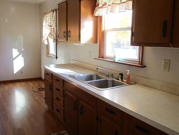 Simple living in this 2-bedroom, 2-bath ranch with vinyl siding and windows. 24 x 32 Garage / Barn with basement. New walls on 3 sides in basement 2014. Electrical breaker box updated 2016. Kitchen appliances stay. Nice sized kitchen with room for a breakfast table. Living room has dining room area. Lower level wood burning stove, full bath with shower that needs some sprucing up but handy to have. Home features a security system and city water. Half of the driveway is concrete. All located on 5.3 wooded acres that go all the way to the railroad tracks. Owner looking for reasonable offers.
