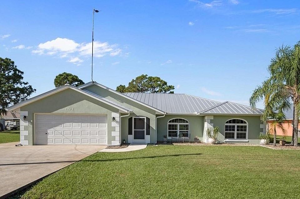 "Move-In Ready, No HOA Fees!" Enjoy peace of mind with a brand-new metal roof, ENERGY STAR double-pane windows, and ceramic tile flooring throughout. This beautiful home features a sparkling fiberglass pool with screened porch, perfect for relaxing afternoons or weekend gatherings. The open floor plan combines comfort and style, with a bright kitchen, granite countertops, and pass-through window to the living area. A small pet access door and a fenced backyard provide extra convenience and privacy ideal for pets, families, or outdoor fun. Nestled in a quiet and friendly neighborhood, this property offers the perfect mix, of comfort, freedom, and Florida charm.