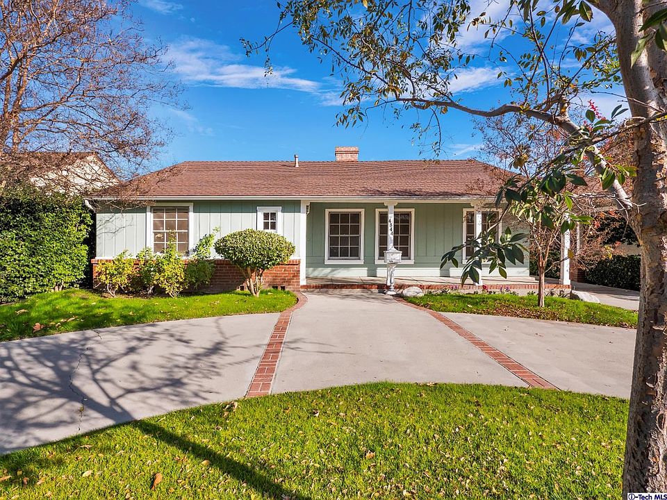 Nestled in the heart of Toluca Woods on a quiet cul-de-sac street this super charming 2 bedroom bungalow has been thoughtfully preserved and maintains many of its original features and architectural detailing! Lush front lawn with manicured grounds boasts a circular driveway perfect for guest parking and provides a great curb appeal. A long, gated driveway leads to the 2-car detached garage w/room to grow, even more for an ADU. Covered porch leads to inside featuring an elegant living room with fireplace and oak flooring throughout, 2 good size bedrooms, a very spacious kitchen, separate dining room, large family room with fireplace, terrazzo flooring, and french doors opening onto the expansive backyard with mature trees and grassy area for play or retreat to the open back patio. Approx. 770 sqft. private artists studio attached to the 2 car garage provides great privacy offering bright and airy living space with vaulted ceilings, a fireplace, separate kitchen, 1 full bathroom, wet bar, laundry in the garage and lots of storage with additional space for outdoor entertaining in the back. Do not miss this truly enchanting property that has great bones and character. Minutes to Universal Studios and all major studios and the Media Center, within walking distance to shops and restaurants, and moments to NoHo Arts District.
