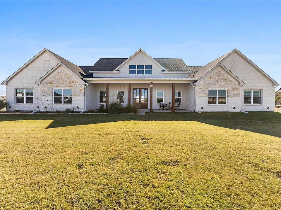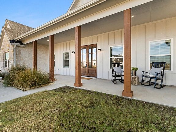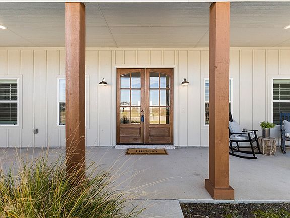The primary suite is a private retreat with vaulted ceilings, a wood beam accent, and a sliding barn door leading to a spa-style bath featuring dual vanities and an oversized shower with dual shower heads. The split-bedroom layout provides privacy for everyone, offering spacious guest rooms, a stylish guest bath with extra storage, and a flex room perfect for a 5th bedroom, game room, or media space. A secondary suite with its own en-suite bath makes multigenerational living effortless. Enjoy outdoor living year-round under the covered patio — perfect for entertaining or relaxing while taking in peaceful country views. The property also features a 3-car garage, a 30x40 insulated shop with electricity, and a 20x30 gable for extra covered parking. This home truly has it all — space, style, and value — at an unbeatable price!