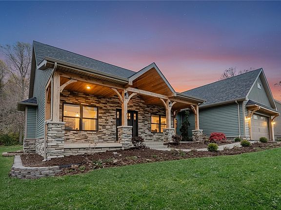 Custom new construction showcasing exceptional craftsmanship throughout. The stone and timber-accented porch with tongue-and-groove ceiling create a warm, elevated welcome. Inside, 9’ ceilings and hardwood floors enhance the open layout. The kitchen features soft-close cabinetry, leathered granite, and a walk-in pantry with added counter space and storage. The primary suite includes a custom walk-in closet and glass-enclosed tiled shower. Enjoy gas radiant in-floor heat, central air, and a heated garage with access to a 12’x40’ unfinished attic (approx. 500 sq ft) for storage or future expansion. Outdoor features include exposed aggregate walkways, covered porch, decorative retaining walls, French drains, and a thoughtfully landscaped yard with arborvitae and flowering trees for privacy. Quality, comfort, and timeless design come together in this truly refined home.
