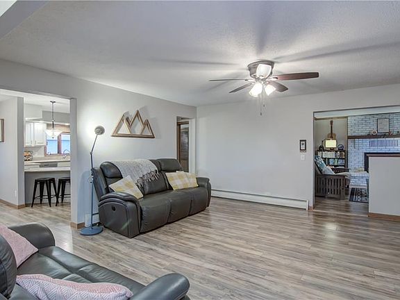 Gorgeous, peaceful setting just minutes from Eau Claire! You will want to see this beautifully updated 3 bed, 2 bath charming farmhouse. The sunsets and sunrises are breathtaking from the front or back porches! The kitchen has been updated with quartz countertops, stainless steel appliances, and new cabinets. There is a large dining room and a cozy new whitewashed fireplace in the den to enjoy the evenings. There is luxury vinyl planking throughout the main floor. The laundry room is on the main floor. There is an attached 2 car garage along with a detached 2 car garage. There is also a large 64x42 pole building for all your toys, along with a large barn, 2 corn cribs, and a tool shed. The yard is well manicured, and there is a large fire pit to enjoy the evenings watching the sunsets. Some other updates include a new shower, double vanity, and whisper fan installed in the upstairs bathroom (2022), new composite decking on the side deck (2024), new well (2021), new mini splits a/c+ heat pump (2021), new garage door (2023), new boiler and roof (2014). This property is a must see!