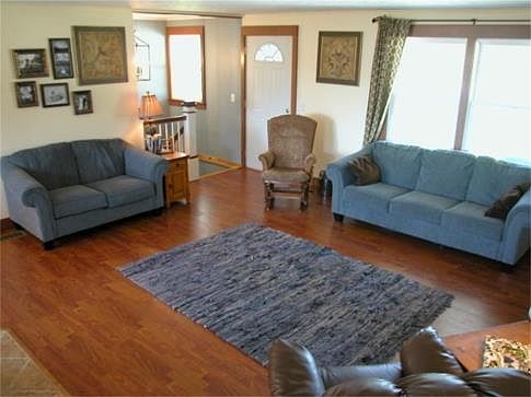 Nice Country setting! Totally remodeled Ranch style home - nothing to do but move right in! Updates and additions include: New Furnace, Ductwork, Central AC, Insulation, New Master Bath, Mater Closets and built-ins. Newly finished basement, stairwell, and Family room. Basement has plenty of unfinished space with a second, separate entrance/stairs from garage. New windows, New Doors, New Ceramic Tile and so much more! Open floor plan for the Living, Dining and Kitchen. There is an add-on wood furnace for supplemental heat. Terrific, large "country-style" front porch and a good sized rear deck off the Dining Room with great views of the countryside. Storage building stays. Enjoy evenings stargazing and watching the fire from the new paver-stone patio/firepit. Too many improvements and updates to list. --iframe>