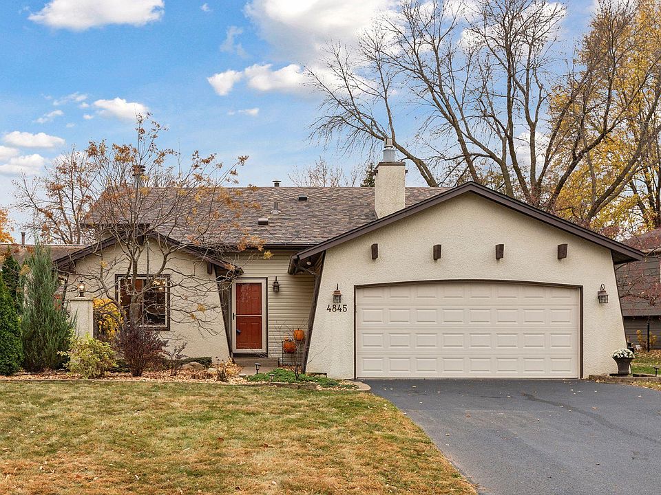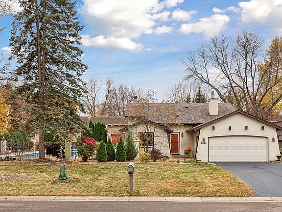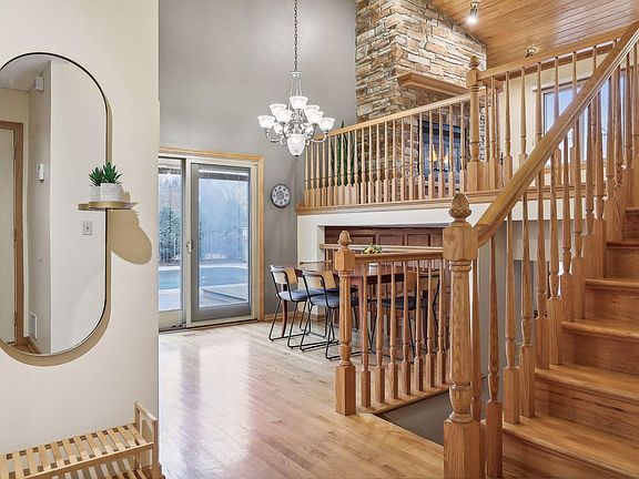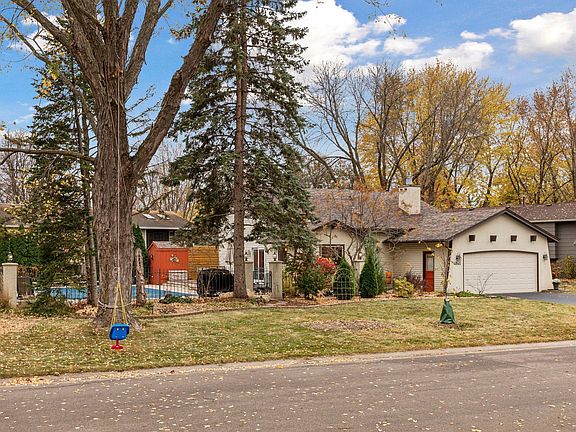 Welcome to your beautifully updated sunlit sanctuary in a quiet cul-de-sac! This charming home features an open floor plan, soaring vaulted ceilings, and stunning hardwood floors throughout, creating a warm and spacious atmosphere. The main level boasts a tastefully updated kitchen with sleek granite countertops and stainless-steel appliances, seamlessly flowing into an informal dining area. Cozy up in the living room on the upper level next to the grand, stone fireplace, and enjoy two well-appointed bedrooms along with a stylishly updated bathroom featuring elegant slate flooring. The lower level offers abundant natural light from lookout windows in the expansive family room, as well as an additional bedroom equipped with a gas fireplace, and bathroom for guests. Outside, retreat to your large maintenance free deck to relax by the heated pool, surrounded by beautifully landscaped gardens, perfect for hosting gatherings. The pool maintenance is a breeze with the robotic cleaner and energy efficient pump allowing all-day water filtration, reducing manual effort and chemical cleaner costs. This energy-efficient home comes with solar panels for huge savings on utility costs (the utility company pays you for all the excess energy you produce!), new 97% Lennox furnace and air-source heat pump (2024), and professionally sealed and insulated attic (2018). Along with your new GE washer, (2019), roof (2021), refrigerator (2022), and newer pool liner/heater/pump, this house is move-in ready today! You'll fall in love with the friendly neighbors and community. The neighborhood includes a central green space and playground which is popular amongst all the kids on the block. Additionally, the home is conveniently located within 2 miles to Turtle Lake Elementary, the hidden gem Turtle Lake Beach and Park, and the Shoreview Community Center with recently upgraded outdoor playground complex, indoor waterpark, rec center, and numerous community activities including education, recreation, and farmers market. This home is part of the highly sought-after Mounds View School District #621. Don’t miss the chance to make this charming and well-appointed home your own!