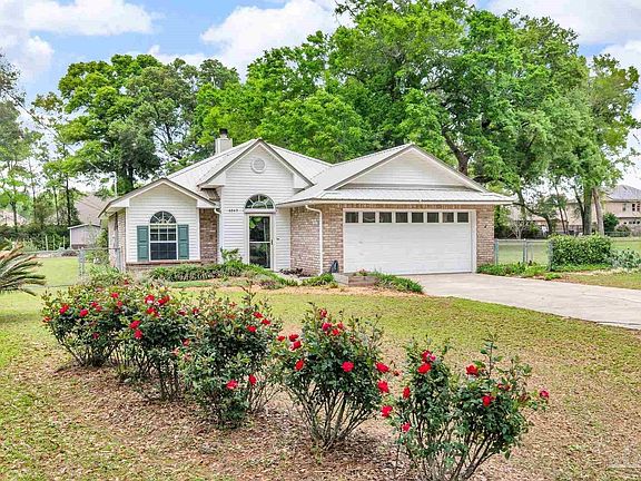 Welcome to this beautiful home situated on 0.62 acre lot in a cul-de-sac with no HOA - offering space, privacy and the freedom to live your way. A metal roof and brand-new HVAC provide peace of mind, while the large fully fenced backyard with a double gate is ideal for pets, gardening and raising your egg-producing chickens. Want to park your boat and RV right on the property or park your car in the 2-car garage? A storm door leads you to the atrium-entry that doubles as a mudroom. Step inside to an open-concept living area w/ a vaulted ceiling, tile floors, and built-in shelving surrounding a cozy wood-burning fireplace. The kitchen includes stainless steel appliances, open floating shelves, new lighting, freshly painted cabinets and hop-up bar that adjoins the open floor-plan. This split plan offers a spacious master suite featuring a tray ceiling, vinyl plank flooring, a walk-in closet w/ cedar floors, and an en-suite bath w/ double sinks, linen closet and shower/ tub combo. Two additional bedrooms share a full bathroom w/ modern amenities. Enjoy the flexibility of a bonus room ideal for a home office, playroom, or workout space. A French door leads to the covered back patio from there overlooking raised garden beds w/ herbs, blackberries, blue berries and vegetables all surrounded by beautiful landscape. There is a separate storage building for all your garden tools and a door to enter into the garage. This property blends comfort, character, and country-style living in the heart of Pace. Schools Pea Ridge, Avalon Middle and Pace High. Water access is only a 10-minute drive and features courtesy dock, restrooms, picnic areas and parking for your trailer while your out on the water. Escambia Bay is a convenient spot for fishing, kayaking, or boating. From charming boutiques to well-known retailers, this area offers a variety of of shopping options just minutes from your driveway. Other options include Pensacola Beach and Milton Riverwalk. Schedule today!