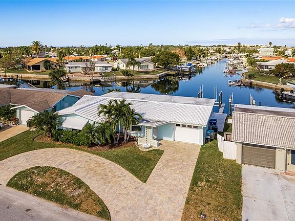 Come enjoy the Tropical Lifestyle in this newly renovated 3-bedroom, 2-bath home featuring 66 feet of waterfrontage with 10,000 lb. lift, huge 24 x 24 fixed dock with composite decking, convenient catwalk on the side of the lift, and brand-new floating dock. Situated on the deep sailboat-friendly South Channel with quick, easy, direct and unobstructed access to the open Gulf waters! Located in the highly sought-after community of Gulf Harbors. This home offers a great 3-way split-floor plan boasting a spacious living room with built in electric fireplace. The kitchen features solid wood cabinets, quartz countertops, stainless steel appliances, built-in desk area and large breakfast bar serving into the family room. The large family room features hurricane-grade sliding doors leading out to the large Travertine paver deck and offers beautiful and expansive water views. Off one end of the family room is the large primary suite which also offers wonderful water views, sitting/office area, huge walk-in closet and private primary bath with step-in shower. Off the other end of the family room is one of the 2 guest bedrooms with water views and its own access to the garage. The other guest bedroom located in the front of the home is gracious in size and has a large walk-in closet. Both guest bedrooms are served by a full guest bathroom. The home offers Travertine tile and Plantation Shutters throughout. The huge Travertine paver deck in the backyard is a perfect place to entertain your envious guests and enjoy the cool gulf breezes and has a built-in gas fire pit! The large paver circular drive allows for plenty of parking. This home has been completely replumbed, new electrical throughout, all drywall has been replaced from top to bottom. New HVAC system, duct work approximately 5 years old. This home is ready for you & your boat(s) to start enjoying the sandy beaches of nearby tropical islands! Excellent fishing, diving, water sports, shelling, island exploring, and more all right outside your door! Gulf Harbors is a golf cart friendly community and has an optional association that offers 2 boat ramps & other amenities. You also have the option to join the Gulf Harbors members-only private sandy beach overlooking the beautiful Gulf and Anclote Key offering cabanas & grills. Downtown New Port Richey, just a short drive away is lively and quaint with many restaurants, bars, shops, and Sims Park where you can enjoy one of the many special events and outdoor concerts throughout the year or stroll along the beautiful riverwalk along the Cottee River. Schedule your viewing today!