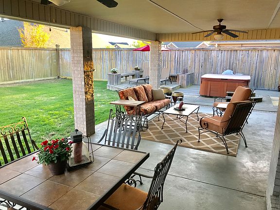 Located in the Nottingham neighborhood, this well-maintained home is zoned for Woodrow Cummins and Ruth Doyle schools. This 4 bedroom 2 and 1/2 bathroom home features a split bedroom floor plan. The interior features include wood flooring and tile throughout, extensive molding, new vented gas fireplace with remote start, great storage, walk in pantry, home security system, media closet with wired indoor and outdoor speakers, and new (2018) HVAC system. The exterior features a large covered patio, deck, hot tub, shop/ storage building, custom built play structure, sprinkler system, 8 foot privacy fence, new roof (2016) and new driveway (2019).