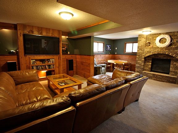 Ample Room For Everyone in this multi Level home, which has two thousand square feet, a large open kitchen, large windows throughout the home, three, large, family room areas, a cozy gas, brick, fireplace, in one area, a theatre, workout area in another, three bedroom on the upper level, two bathrooms, a huge storage room, an oversized deck, two, separate, double, garages, both insulated and wired with cable and internet, a sixteen by sixteen storage shed, all on an elevated 2.71 acre lot, and eighty acres of wooded State land with river and pond access directly across the street.