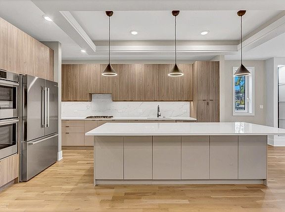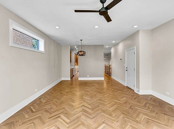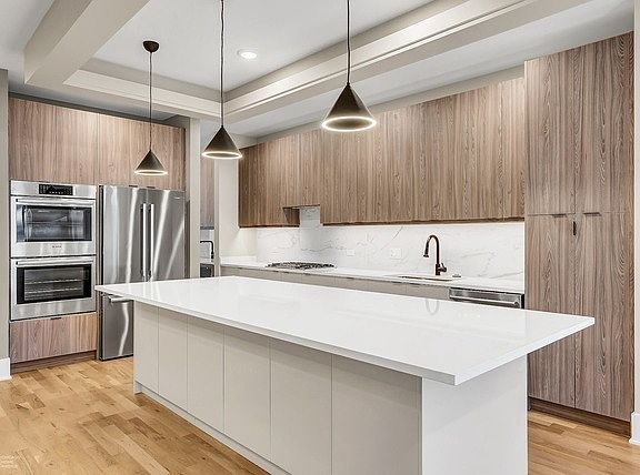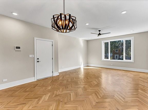Luxury 4 Bedroom/2.1 Bath Duplex in Bronzeville! This massive duplex down unit is apx 3,000 square feet of high-end luxurious living in the booming Bronzeville neighborhood. Open floor plan layout on main level features full-sized dining room with custom Chevron hardwood floors, Chef's kitchen, powder room, and huge family room. Separating the main level living spaces is a butler pantry with custom cabinetry, open shelving, and wine fridge. The luxurious kitchen features an oversized island with breakfast bar overhang & waterfall edge, quartz countertops & backsplash, stainless steel appliances, tray ceilings, and an abundance of custom cabinetry & storage with under cabinet lighting. Rounding out the main level is a large family room that showcases custom built-in shelving with LED lighting surrounding the fireplace along with access to a private balcony. Lower level has radiant heat throughout, 4 bedrooms, 2 full bathrooms, storage, and laundry room with washer/dryer, and sink. Primary bedroom with ensuite includes walk-in closet and primary bathroom includes floating double vanity sinks with quartz countertops, walk-in shower with rain shower head, and separate deep soaking tub. All bedrooms have closets built out with custom organizers. Lower level guest bath has double vanity and shower/tub combo. Other features within the unit include custom window treatments throughout, Central AC & GFA, video intercom, coat closets on both levels, ceiling fans, and sound barrier between floors with open cell foam. Garage parking is available for 150/month. Move-in of 750 due on move-in date. Pets allowed with an additional charge. Landlord requirements are an established credit score above 680 and combined monthly income exceeding 3x the monthly rent. Available Now!