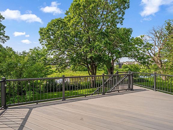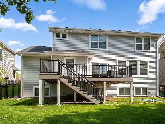 Beautifully maintained home on a premium cul-de-sac lot with wetland views and mature trees. This open concept layout features warm-stained cabinetry, granite countertops, tile backsplash, walk-in pantry, brand new stainless steel appliances, and a spacious mudroom with cubbies and a walk-in closet. Main level includes a dedicated office, fireplace with built-ins, wood panel accents, and wrought iron railings. Step outside to an oversized maintenance-free deck with stairs leading to a newly fenced backyard - perfect for relaxing or entertaining.