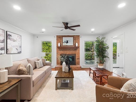Welcome home to this beautifully maintained 3-bedroom, 2-bath ranch offering effortless one-level living and a bright, open floor plan. The spacious living room features laminate wood flooring, large windows, and a wood burning fireplace. The kitchen is a showstopper with abundant cabinetry and vaulted ceiling with exposed wooden beams, and a dedicated pantry. The open-concept layout flows seamlessly into the dining area ideal for entertaining friends and family. Retreat to the primary suite featuring a beautifully renovated ensuite bath with a custom-tiled shower, dual-sink vanity. Enjoy the outdoors with a spacious backyard, deck, and storage shed. Updates include a new roof (2024) and new water heater (2025), giving you peace of mind for years to come. Located on a quiet street with easy access to community park and greenway, this home offers the perfect blend of comfort and convenience.