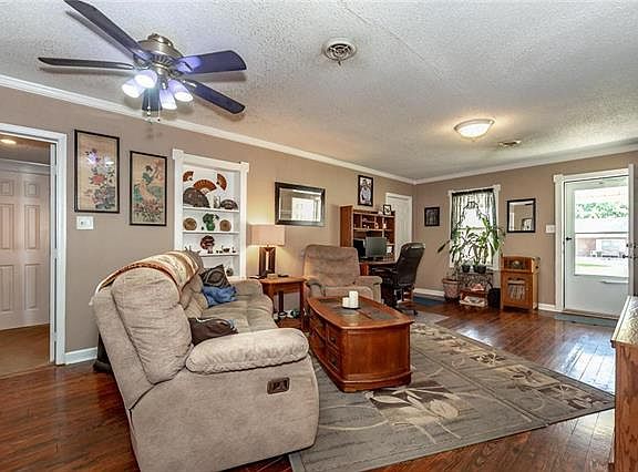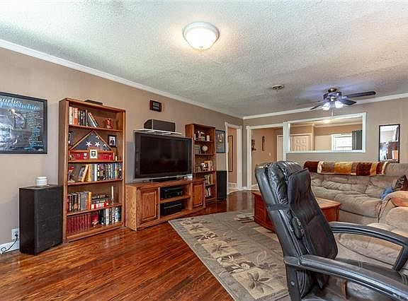 Sit a Spell on your Charming Covered Front Porch! Step inside the Welcoming HDWD FLR Liv RM w/Pass Thru to Kitchen. Kitchen boasts SS Appl incl. Gas Stove, Micro, DW & Frig-STAYS!. Laundry Closet conveniently located in Kitchen--LG enough for Side-By-Side or Stacked Washer/Dryer. MSTR BR highlighted by Walk-In Closet & Access to 1 of 2 Back Patios. Spacious 2NDRY BRs w/Long Closets, Carpet, Crown MLDG & Blinds. BRs share Hall Bath. Oversized Garage w/Pull-Down. Sale flipped no fault of the seller.