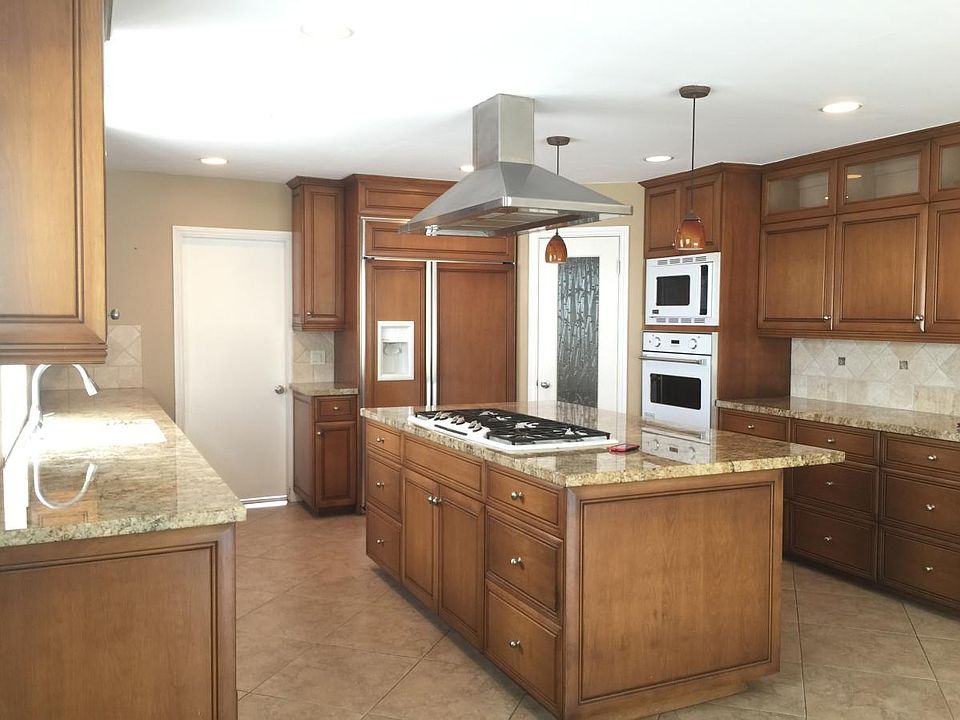 Gourmet kitchenCustom cabinetryStainless steel appliancesGranite countertopsBright and airy