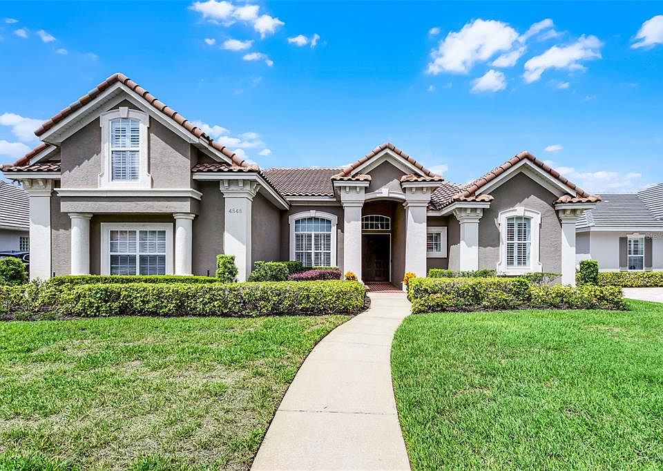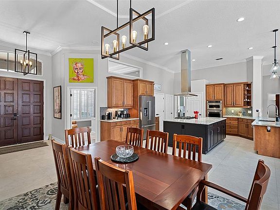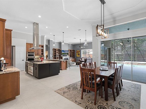 Experience luxury and thoughtful design in this extensively renovated and fabulous 5-bedroom, 4-bath custom Reiche Silliman home, nestled in the prestigious gated community of Kensington Park in the heart of Dr. Phillips. Classic curb appeal features a tile roof, manicured landscaping, and elegant plantation shutters. The side entry 3 car garage and the driveway have ample space for families with multiple cars. Step inside the spacious foyer and notice the efficient use of space in this open floor plan and coupled with smart home system capability, the home provides the lifestyle today’s families want. There is dedicated home office just to the left of the entry with a front view where you can watch for your package deliveries while you work. Also adjacent to the foyer is Bedroom 4, complete with a full bath next to it for perfect privacy for guests or multigenerational living. The open-concept living area dazzles with oversized tile floors, designer lighting, and stacking glass patio doors that slide into wall recesses seamlessly blending indoor and outdoor spaces to the screened lanai, pool, spa, and sun-filled patio. The chef’s kitchen has been reconfigured, expanded and striking upscale finishes chosen to create the home’s warm and inviting heart of the home, featuring a 6-burner gas range with stainless steel exhaust above, additional wall oven and microwave, two walk-in pantries and plentiful cabinetry, a large center island with lots of prep space for multiple cooks to work, and which has custom roll-out shelving with heavy-duty hardware. There is a separate breakfast bar with deep stainless farmhouse style sink, pendant lighting above and it overlooks the spacious family room with built in shelving and cabinets around the gas fireplace. Entertain with ease in this home with the open dining room area with lots of space for seating around your large dining table and the handy built-in bar and server with beverage refrigerator. This home is perfect for gatherings big and small. All of the bedrooms in the home have beautiful wood floors for a warm and inviting look. The primary suite is privately located on the main floor, offering a spa-inspired bath with a soaking tub and walk-in shower, double sink vanity, two generous sized walk-in closets, and private toilet room—all the makings of a serene retreat after a busy day. The primary bedroom overlooks and accesses the pool and patio through glass patio doors. Bedrooms 2 and 3 are tucked down a hallway on the opposite side of the home, along with a full bath with stunning new walk-in shower, that also serves as a pool bath, ideal for family and guests. Upstairs, a generous fifth bedroom or bonus room with its own full bath and closet is the perfect retreat for teens, guests, a home gym, or a movie and game area. The updated laundry room location is handy right next to the kitchen and features a deep utility sink, ample cabinetry, and a modern ventless stacked washer/dryer for added convenience. Kensington Park has a playground, tennis basketball and pickle ball courts in the community park just inside the entry gates. Located minutes from top-rated schools, many varied grocery options, upscale dining, boutique shopping, and Orlando’s best attractions, this home combines luxury, privacy, and everyday ease in one of the city’s most desirable neighborhoods.