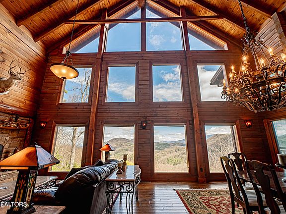 Serving as a second home for previous owners, this retreat has been meticulously maintained, embodying a sense of pristine elegance and comfort. The main living room epitomizes spaciousness and grandeur with its open concept design and soaring 40-foot-high ceilings, offering an uninterrupted panorama of the Smoky and Chillhowee Mountains through expansive windows.