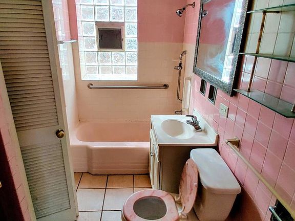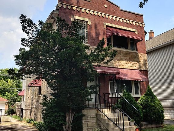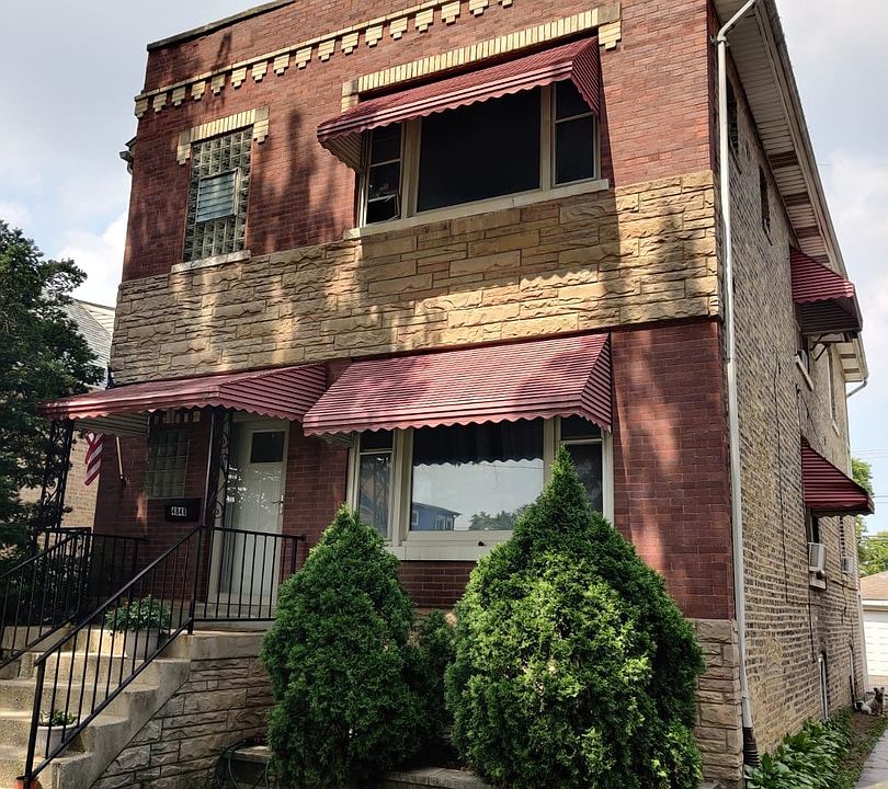 Brick 2 flat with a 3 bedroom and 2 bath duplex first floor with the basement and a second floor 3 bedroom apartment. Driveway on the side leading to the 2 car garage.