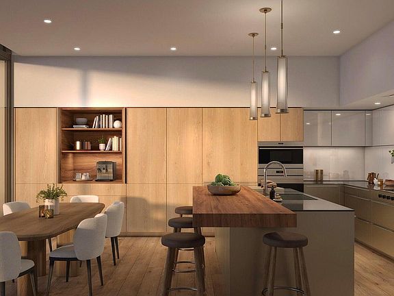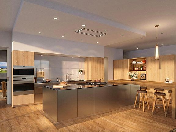 Modern gas fireplaceBuilt in outdoor barbecueFloor to ceiling glassMassive sliding glass doorsExecutive kitchen and bathsPowder roomWood flooring
