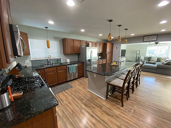 GORGEOUS UPDATES throughout this quiet property conveniently located by schools and Camp Pendleton. A/C and SOLAR. Refinished hardwood floors and updated carpet are easy to maintain in this 3 bed/2 bath house. The oversized kitchen has an open floor plan to the dining area and a step down into a large family space. Updated appliances with gas oven and range. Wine refrigerator located in the large counter height island with room for 4 stools. Sliding doors from the family space to the relaxing backyard with a firepit and room for play. A larger side gate opens to the back for storage. New master bath with tiled shower and new tile floors. Venetian style blinds on each window. Two car garage with room for storage and hook ups for laundry. Easy access outlets for backyard tools and holiday lights. Neighborhood with sidewalks, weekend ice cream trucks, and privacy. Showings possible on weekends, or via Facetime. Tenants responsible for all utilities. Washer and dryer not included. Non refundable $250 pet deposit required. Pet and breed exceptions. Backyard hammock not included.