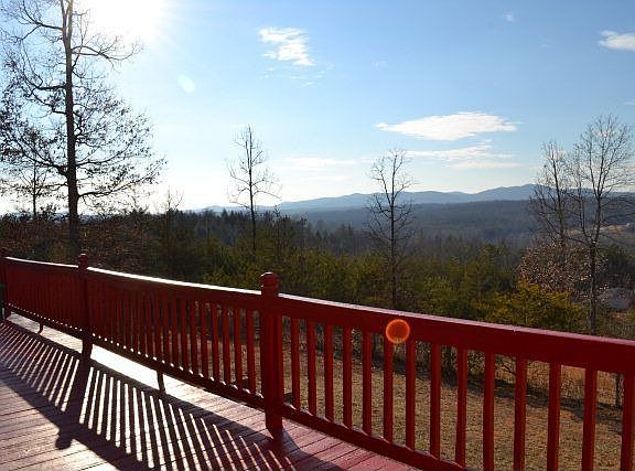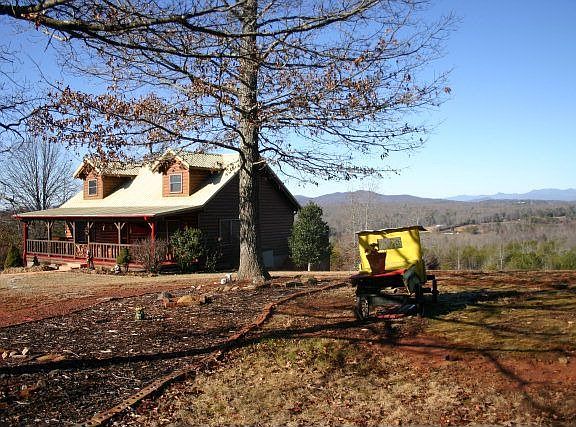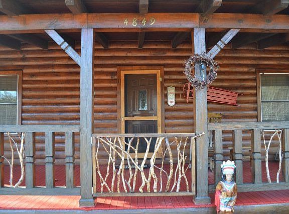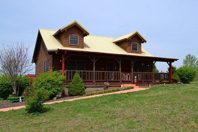 Log home on 6 acres could be a peaceful weekend getaway or a year-round home. Main level has foyer, LR, kitchen/dining combination, master bedroom and 1-1/2 baths. Lots of natural light. Upstairs has 2 spacious bedrooms plus an office or den and a full bath. Deck extends the length of the house across rear of home with a fantastic view. Full unfin bsmt. 4 acres fenced w/barn. Patio & fire pit.