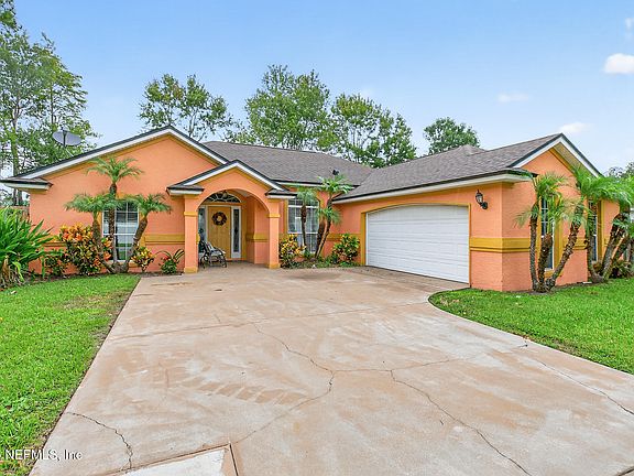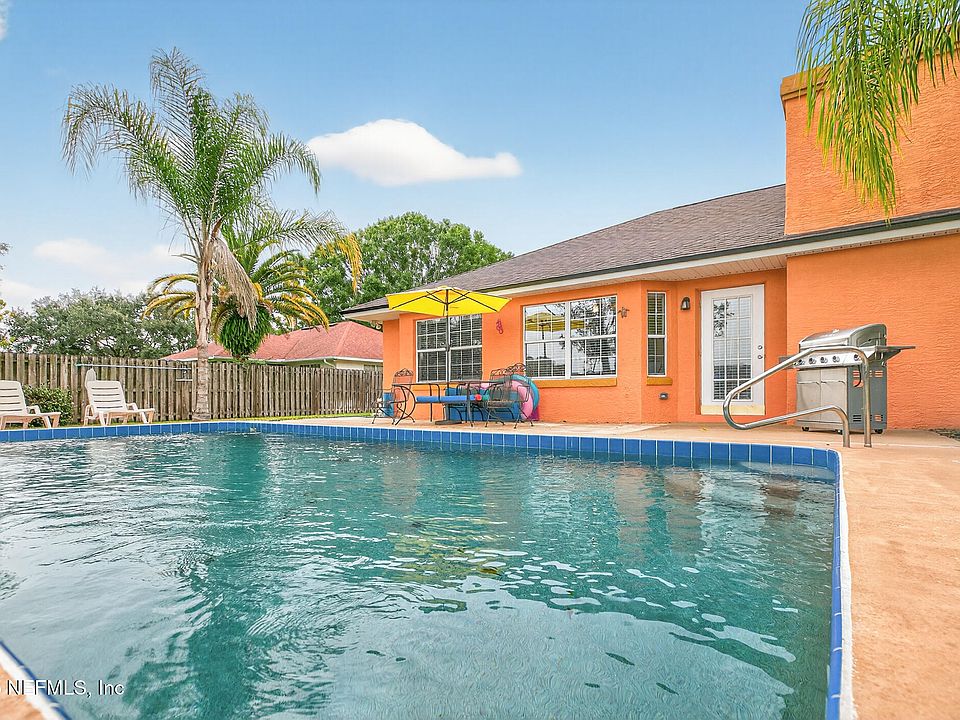SOLID CONCRETE BLOCK FURNISHED POOL HOME IN PEACEFUL WOODRIDGE SUBDIVISION! Built high and dry and sitting on 1/3 acre lot with 2 car garage and no HOA. Lovingly updated by current owners, this home has (in the past few years) been painted inside and out, new flooring, new kitchen with granite counters, stainless appliances, breakfast bar and breakfast nook. With a split floorplan, family room features 10 foot ceilings and a fireplace (not in use) and formal dining room. Primary has large ensuite and walk in closet. 2 guest rooms share a further bathroom. Roof replaced 2020, Water Heater 2022 and AC 2024. Pool resurfaced 2017 and new pump 2022. Septic field and pump replaced in 2024. Home includes all furniture so is perfect for first time buyer or AirBNB. Centrally located, close to schools, shopping, pristine beaches, historic downtown St. Augustine and I-95 for an easy commute. This is move in ready!!!