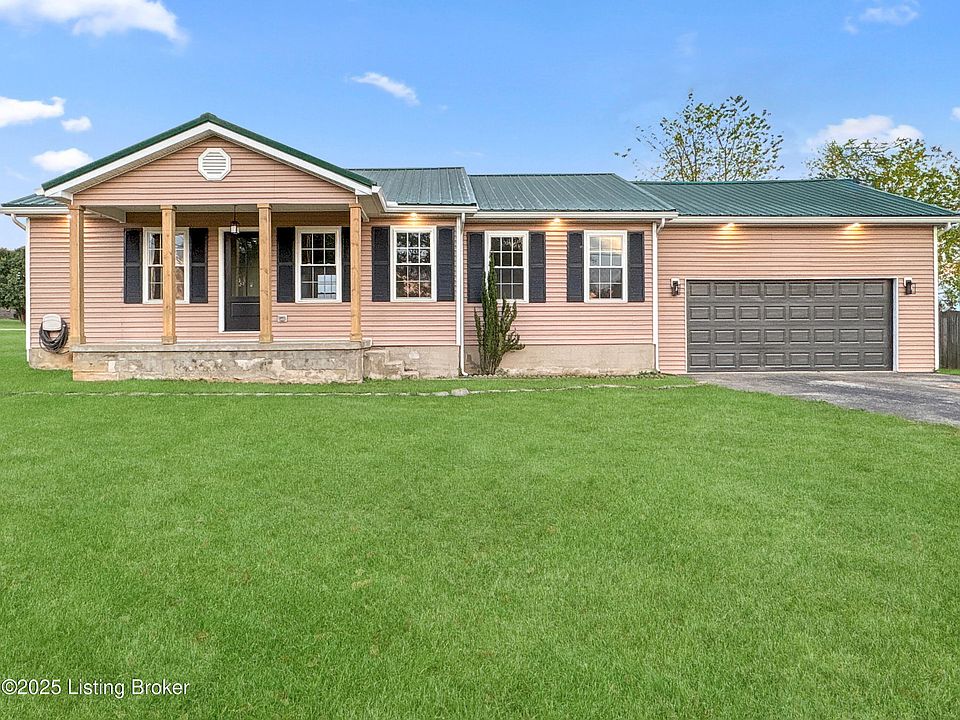 This adorable, remodeled 3-bed, 2-bath home with a 2-car garage sits on a spacious 0.71-acre corner lot in Bloomfield, Ky. Thoughtfully designed and featuring all-new LVP flooring, fresh paint, modern fixtures, Bluetooth speakers, & stylish custom upgrades throughout, this home is a must see! The kitchen offers new cabinets, countertops, a tile backsplash, & all new fixtures. The living room is a true showstopper with vaulted ceilings, accent beams, oversized pendant lighting, a floor-to-ceiling shiplap fireplace with electric insert, & a custom accent wall! Both bathrooms have been beautifully remodeled — one with a deep soaking tub and floor-to-ceiling tile, and the primary with a custom-tiled walk-in shower. The welcoming front porch & brand new 8x12 deck are perfect for entertaining!