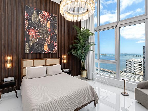 Experience the pinnacle of Miami luxury in this Icon Tower residence in the heart of Brickell. Rated a perfect 5 stars and awarded a guest favorite as one of the most loved homes on AirBnb with floor-to-ceiling windows frame skyline and bay views, while interiors are designed around the dream that was vintage Miami--blending timeless Art Deco elegance with modern sophistication. Features include a custom hand-cut tub, hand-blown crystal chandeliers, and access to resort-style amenities shared with the W Hotel. Steps from chic dining, nightlife, and designer shopping. Set on the 28th floor of The Icon Brickell, this unit boasts impressive high floor-to-ceiling windows, offering two private balconies showcasing partial water views and stunning cityscapes. This is a MUST SEE!!