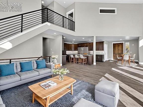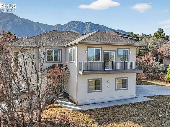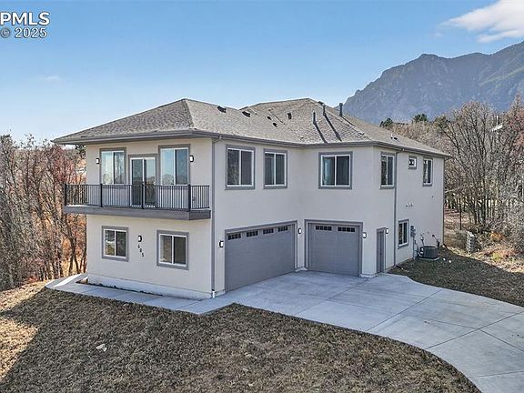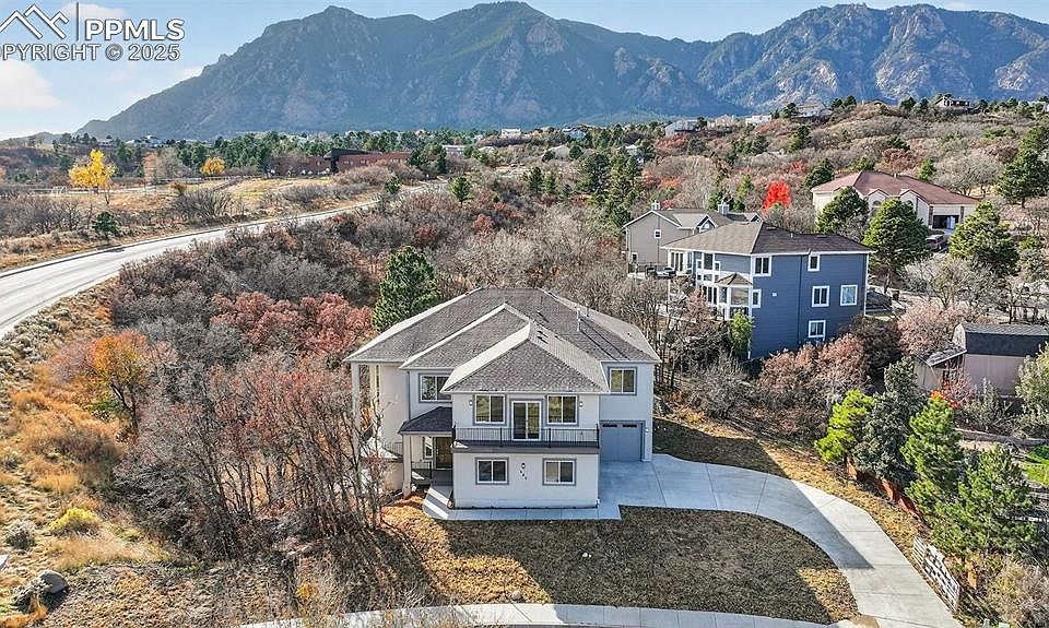 Nestled at the base of Cheyenne Mountain, this thoughtfully designed 6-bedroom, 7-bathroom home blends luxury, comfort, and natural beauty. The main-floor owner’s suite offers a spa-inspired retreat with a soaking tub, double vanity, and standalone shower. Upstairs features four additional bedrooms—two with private ensuites and two sharing a 3/4 bath—plus a spacious bonus/game room. A junior ensuite is located in the basement, along with two powder rooms on the main and lower levels, providing added flexibility and privacy for guests. Soaring 20-ft ceilings in the great room create an airy, open feel, while 10-ft ceilings in the primary suite and 9.4-ft ceilings throughout the rest of the main level and basement add to the sense of space. The gourmet kitchen showcases a large island with Taj Mahal quartzite countertops, brushed nickel hardware, and high-end appliances, including a Frigidaire 66" x 74" fridge/freezer combo, ZLINE range with steam oven, microwave drawer, LG dishwasher, and Kraus metal sink. Custom Colt-finish cabinetry extends through the kitchen, walk-in pantry, mudroom, and basement wet bar. Additional highlights include LVP flooring, plush carpet in bedrooms and basement, Jeld-Wen windows, Fortress interior railings, Class 4 impact- and fire-resistant roof shingles, a Ruud A/C system, sump pump, radon mitigation, and a negative-pressure crawl space fan. The finished, insulated garage includes 8-ft Wayne Dalton doors and Chamberlain openers. Enjoy outdoor living with a large Trex Enhance deck, metal railings, concrete driveway and walkway, and a striking 4x8 solid alder front door. Mature scrub oak trees and a slow-flowing stream surround the property for a serene Colorado lifestyle—all within the award-winning D-12 school district and minutes from The Broadmoor, I-25, DT COS and nearby parks, including Broadmoor Bluffs Park, Broadmoor Glen Park, and Cheyenne Mountain State Park, offering endless opportunities for recreation and relaxation.