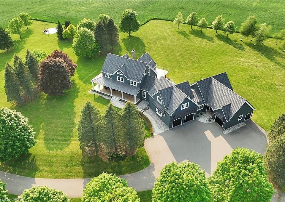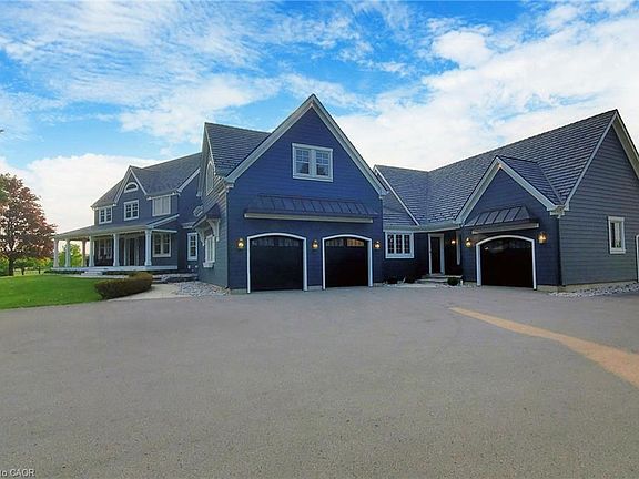 Experience the perfect blend of luxury, comfort & country living at 485 Concession Road 5 E. This 91.6-acre estate offers scenic expansive grounds, woodlands & a tranquil spring-fed pond, approximately 4–5 feet deep, ideal for peace, seclusion & entertaining. The property offers a rare opportunity to enjoy a sustainable lifestyle alongside modern luxury. Fully renovated 2.5-storey, 6 bed, 6 bath home w/ attached 2 bed 2 bath guest house was remodeled by Neven Custom Homes in 2022/23, featuring $2M in premium renovations. Highlights include DaVinci composite shake roof, custom windows, new doors, spacious living areas & elegant details throughout. Grand wrap-around veranda & glass-railed deck invite you in. Gourmet kitchen boasts 2 expansive islands, ample storage & luxury appliances w/ separate prep kitchen. Open-concept design leads to dining room, breakfast area & grand great room w/ soaring 20’8” ceilings, stone fireplace & sliding doors to large deck, perfect for sunsets or hosting. Main floor also includes powder room, laundry, mudroom, 3pc bath & 4 car garage. Primary suite features timber frame accents & luxurious 5pc ensuite, while 2 additional bedrooms share a beautifully designed 4pc bath. Half-storey above offers bonus room, ideal for a studio or bedroom, along w/ a den. Lower level is perfect for extended family, w/ rec room, full kitchen, bedroom, bath & walkout to backyard. Guest house includes spacious kitchen, high-end appliances, separate laundry, walkout deck & open living/dining areas w/ panoramic views. Main-floor bedroom w/ walk-in closet & Jack-&-Jill ensuite adds comfort & privacy. Additional features include: Large Quonset hut (2010), over 800 evergreen trees, forested area, 2 septic systems & 2 geothermal systems. Located near amenities, property offers rare opportunity for luxurious lifestyle w/ endless possibilities. LUXURY CERTIFIED.